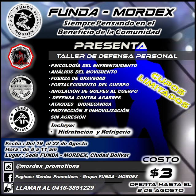 “FUNDA-MORDEX” y su programa y “El Equipo Integral MMA Angostura”, siempre en apoyo de todos los talentos de nuestra región, a nivel Nacional e Internacional, en la muestra de evidencias de la preparación deportiva y física de nuestros Atletas… ya cerrando Julio 2019.